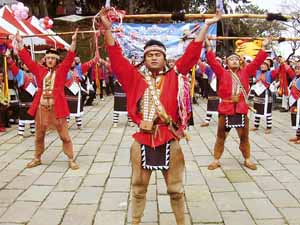 鄒族勇士在開(kāi)幕式中跳舞祈福