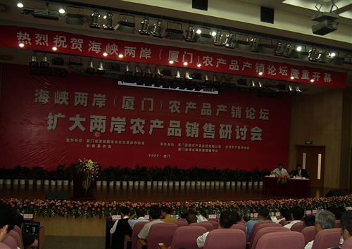 中國臺灣網(wǎng)8月30日廈門消息 海峽兩岸農(nóng)產(chǎn)品產(chǎn)銷論壇8月29日在廈門召開,本次論壇主要是探討兩岸農(nóng)業(yè)合作發(fā)展以及臺灣農(nóng)產(chǎn)品在大陸銷售問題,以進(jìn)一步促進(jìn)兩岸農(nóng)業(yè)貿(mào)易,擴大臺灣農(nóng)產(chǎn)品外銷通路。在開幕式后,分別于上午和下午舉行了兩岸農(nóng)產(chǎn)品產(chǎn)銷主題演講和擴大兩岸農(nóng)產(chǎn)品銷售研討會,兩岸農(nóng)業(yè)界人士的發(fā)言說明了兩岸農(nóng)業(yè)合作前景廣闊。