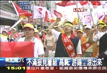 據報道,陳水扁上臺后,借一系列所謂的“金融改革”動作,令臺灣金融業(yè)大部分落入幾大財團手上。為了反對“二次金改”,昨天上午10時不到,臺“立法院”群賢樓前,已經慢慢開始聚集銀行工會成員。舞臺上,不滿民進黨當局推動“二次金改”、“反并吞要權益”的標語,表明他們這次抗議的訴求。據悉,這次大游行的三大訴求分別為:一、反對財閥治臺,嚴禁敵意并購;二、尊重自主經營,強化金融監(jiān)理;三、還我勞動三權,保障勞動權益。