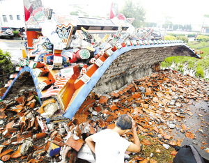 資料圖:9月7日,宜蘭發(fā)生6.3級地震,羅東鎮(zhèn)40年牌樓倒塌。