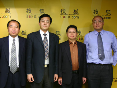 2005年10月24日,中國臺灣網(wǎng)與搜狐網(wǎng)合作,對《臺灣同胞抗日斗爭展覽》的三位撰稿人進行專訪。圖中從左到右分別為:中國社科院臺灣史研究中心褚靜濤先生,臺灣史研究專家、臺盟中央宣傳部副部長、臺海出版社社長安然先生,全國臺聯(lián)聯(lián)絡(luò)部部長、前全國臺聯(lián)研究室副主任、全國臺灣研究會理事楊毅周教授,中國臺灣網(wǎng)副總編輯吳彤先生
