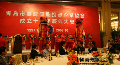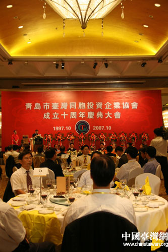 中國臺灣網(wǎng)9月18日青島消息 昨天晚上,青島市臺資企業(yè)協(xié)會成立十周年慶典大會在香格里拉大飯店隆重舉行,國臺辦經(jīng)濟(jì)局局長徐莽,中共青島市委常委、秘書長張澤忠,副市長馬世忠,中國國民黨政策會副執(zhí)行長兼大陸事務(wù)部主任張榮恭,臺灣工業(yè)總會、臺灣工商協(xié)進(jìn)會、臺灣區(qū)廠商聯(lián)合總會參訪團(tuán)成員,以及出席2007年臺灣同胞投資企業(yè)協(xié)會會長座談會代表等五百余人出席慶典。