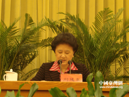 全國政協(xié)副主席、中央統(tǒng)戰(zhàn)部部長、中國和平統(tǒng)一促進會執(zhí)行副會長劉延東作工作報告。