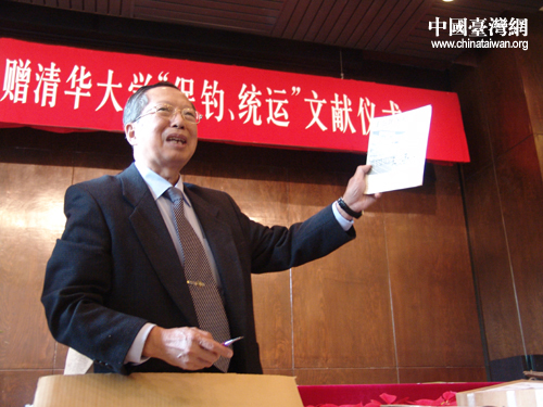 全國政協(xié)副主席張克輝以及部分在京參加過當(dāng)年“保釣、統(tǒng)運”的臺籍人士參加了捐贈儀式。(江洪凌)
