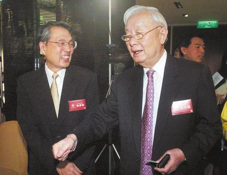 施振榮(左)和張忠謀。(圖:臺(tái)灣《中國(guó)時(shí)報(bào)》)