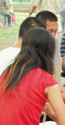 臺灣游民愈來愈年輕,16歲的小玲(背對鏡頭長頭發(fā)者)與她左邊19歲的阿賢,兩人在游民群中顯得特別醒目。(圖:聯(lián)合報)