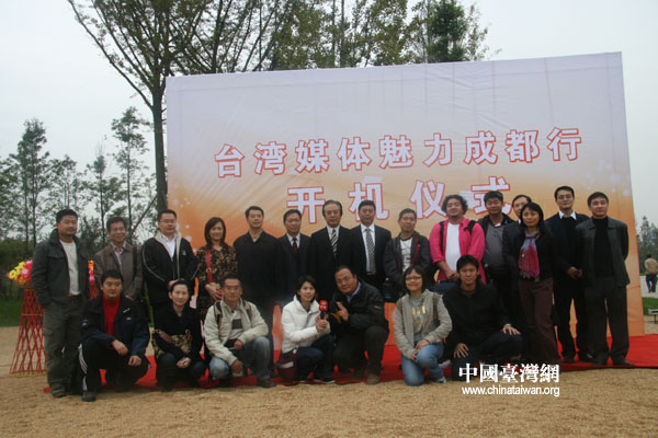 臺(tái)灣媒體記者們和成都市領(lǐng)導(dǎo)在開(kāi)機(jī)儀式前合影留念(攝影:陳寧)