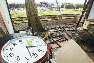 苗栗縣后龍鎮(zhèn)地下爆竹廠昨天爆炸,工廠60米外的一戶民宅,屋頂門窗全毀,屋內(nèi)時(shí)鐘還停留在爆炸發(fā)生時(shí)的10時(shí)3分!堵(lián)合報(bào)》記者陳易辰攝