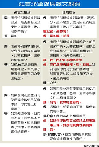 侯寬仁并表示愿意與證人莊美珍公開對質(zhì),也引周士榆檢察官在謝長廷“特別費案”中對證人的訊問方式,強調(diào)都是用假設(shè)性的訊問方式。