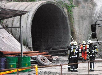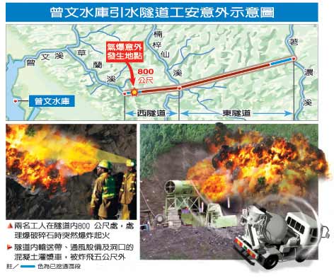 發(fā)生氣爆的隧道已開挖約1000米,須由嘉義大埔鄉(xiāng)前往,嘉義縣消防局據(jù)報后立即動員大批消防人車,昨天下午第一批搜救人員摸黑進(jìn)入隧道內(nèi)約400米處,發(fā)現(xiàn)空氣中有一半是有毒和危險氣體,趕緊撤出。(高大林)