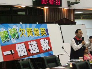 國民黨高雄市議員要求陳菊向黃俊英道歉。(“中廣新聞”圖)