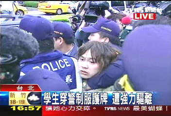 臺(tái)灣學(xué)生遭警方強(qiáng)力驅(qū)離。(臺(tái)灣TVBS圖)