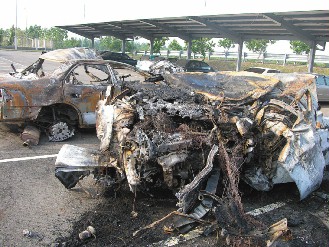 警消人員將火勢(shì)撲滅后發(fā)現(xiàn),兩部車(chē)上的駕駛及乘客均被燒成焦黑,已無(wú)生命跡象,除將遺體轉(zhuǎn)送到臺(tái)南縣柳營(yíng)殯儀館安放外,也循線通知家屬到場(chǎng)指認(rèn)。但由于辨識(shí)困難,目前仍未確認(rèn)死者身份,警方將進(jìn)行較精確的比對(duì)工作。
