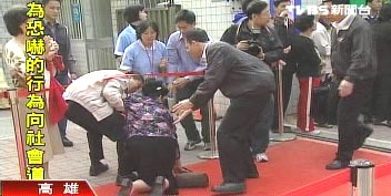 臺灣老婦“扁迷”向陳水扁下跪遭帶離 來源:臺灣“TVBS”