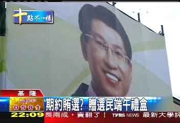 據(jù)TVBS了解,檢方調(diào)查發(fā)現(xiàn)陳朝龍今年端午節(jié)送出上百個禮盒,每個禮盒都有上千元,禮盒上附有陳朝龍的名片。在今年6月以前,經(jīng)過民進黨黨內(nèi)初選,陳朝龍已經(jīng)是臺北縣第12選區(qū)唯一代表民進黨出馬角逐的參選人,因此檢方認定這些端午節(jié)禮盒,有期約賄選的嫌疑。