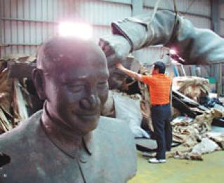 資料圖:高雄市政府拆下的蔣介石銅像支離破碎,2007年3月15日運(yùn)抵桃園縣大溪鎮(zhèn)時(shí),接收人員當(dāng)場傻眼。