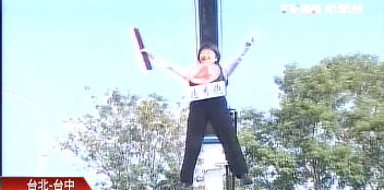 盧秀燕扮空中飛人 (來(lái)源:臺(tái)灣TVBS)