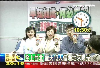 昨天上午9點(diǎn)45分,“立法院”國民黨團(tuán)和民進(jìn)黨團(tuán)準(zhǔn)時(shí)開工;“立委”候選人紛紛北上開記者會(huì),國民黨團(tuán)書記長郭素春說:“我們馬上接著要開另外的記者會(huì),請(qǐng)各位稍等!