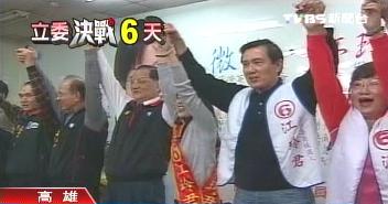 據(jù)臺(tái)灣“中廣新聞”報(bào)道,“立委”選舉前夕最后一個(gè)超級(jí)星期天,連戰(zhàn)特地南下高雄縣為4名國民黨“立委”候選人吳光訓(xùn)、江玲君、鍾紹和和林益世站臺(tái)造勢(shì),馬英九也再度南下,陪同江玲君和吳光訓(xùn)到眷村掃街拜票。