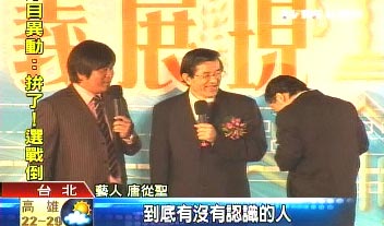中國臺灣網(wǎng)1月11日消息 據(jù)臺灣TVBS電視臺報道,今天是臺灣地區(qū)“司法節(jié)”,由于正逢“立委”選舉期間,臺當局“法務部”特別安排15名檢察官演出反賄選舞臺劇,還請來模仿陳水扁維妙維肖的藝人唐從圣和胡瓜,就反賄選議題自由發(fā)揮,兩人幽默的對談,讓現(xiàn)場氣氛輕松不少。