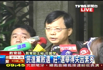 中國(guó)臺(tái)灣網(wǎng)1月14日消息 據(jù)臺(tái)灣TVBS報(bào)道,島內(nèi)“立委”選舉民進(jìn)黨慘敗,民進(jìn)黨內(nèi)部有人將原因歸咎于“上杜(杜政勝)下謝(謝志偉)加連莊(莊國(guó)榮)” 發(fā)言不當(dāng)。呂秀蓮也批評(píng)民進(jìn)黨中有部分人士言語(yǔ)粗暴,對(duì)民進(jìn)黨造成很大傷害,拆“大中至正”匾牌的執(zhí)行者應(yīng)該道歉。臺(tái)當(dāng)局“教育部”主任秘書莊國(guó)榮表示,道歉是不可能的,一定會(huì)堅(jiān)持到底。