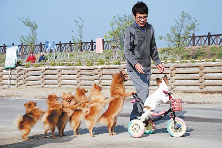 中國(guó)臺(tái)灣網(wǎng)1月15日消息 據(jù)臺(tái)灣“中時(shí)電子報(bào)”報(bào)道,臺(tái)南市關(guān)懷流浪動(dòng)物的代言狗“有錢家族”,最近頻頻上電視登臺(tái)表演賺取車馬費(fèi),并全部捐給臺(tái)南市關(guān)懷動(dòng)物生命協(xié)會(huì)及臺(tái)南市流浪動(dòng)物中途之家義工隊(duì),關(guān)懷更多流浪狗。圖為“有錢家族”一家六口表演最拿手的搭肩接龍游戲,模樣相當(dāng)可愛。(周先)