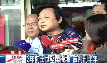 王世堅在2005年4月26日,趁著連戰(zhàn)訪問大陸,帶大批群眾到桃園國際機場抗議,今天桃園地方法院作出一審判決,將王世堅依妨害“公務(wù)法”和違反“集會游行法”,各判6個月、減刑3個月,兩罪合并刑期為半年。(高大林)