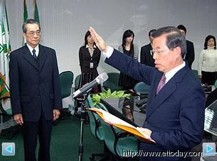 民進(jìn)黨代理主席謝長廷16日正式宣誓就任,并首次主持民進(jìn)黨中常會(huì)。臺灣東森新聞?dòng)浾咧旒覐⿺z