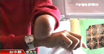 李先生:“這是我斷掉的那包手。”(臺灣TVBS圖)