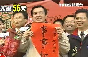 馬英九寫(xiě)春聯(lián)義賣(mài)。(臺(tái)灣TVBS圖)
