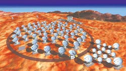 ALMA(阿塔卡瑪大型毫米及次毫米波數(shù)組)是由北美、歐洲和日本等三個主要團隊合作推動,計劃以12億美元在智利阿塔卡瑪沙漠建造由66座天線組成的數(shù)組電波望遠鏡,為有史以來最大規(guī)模的地面天文臺計劃,可以看到哈勃太空望遠鏡無法觀測到的范圍,影像分辨率達哈勃望遠鏡的10倍,靈敏度為現(xiàn)有同波段望遠鏡的10000倍。