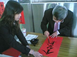 臺(tái)鐵宜蘭運(yùn)務(wù)段指出,宜蘭火車(chē)站推出的“過(guò)年坐火車(chē)、免費(fèi)送春聯(lián)”活動(dòng)期間,每天上午由精于書(shū)法的運(yùn)務(wù)段副段長(zhǎng)林清泉在宜蘭火車(chē)站候車(chē)室現(xiàn)場(chǎng)揮毫,供民眾索取。