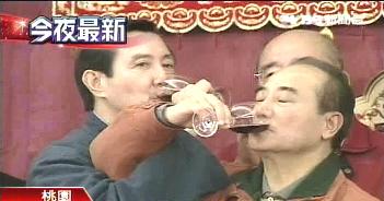 報(bào)道指,馬英九、王金平昨晚在媒體提議,并且在吳伯雄的撮合下,再度喝起交杯酒,象征國民黨的團(tuán)結(jié)。(周先)