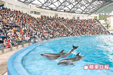 花蓮海洋公園:海豚表演座無(wú)虛席。