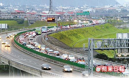 春節(jié)期間,臺(tái)灣雪山隧道天天塞爆。(蘋果日?qǐng)?bào)圖)