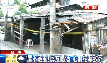 中國(guó)臺(tái)灣網(wǎng)2月13日消息 據(jù)臺(tái)灣TVBS電視臺(tái)報(bào)道,臺(tái)東近日出現(xiàn)低溫天氣,昨晚更是達(dá)到入冬以來(lái)最低溫13度,造成2人凍死,其中1名男子是和朋友在木屋喝酒,簡(jiǎn)陋的屋子擋不住寒風(fēng),這名男子在睡夢(mèng)中疑似心肌梗塞死亡。