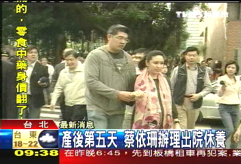 中國(guó)臺(tái)灣網(wǎng)2月17日消息 據(jù)臺(tái)媒報(bào)道,國(guó)民黨榮譽(yù)主席連戰(zhàn)的兒媳婦蔡依珊今天早上辦理了出院手續(xù),轉(zhuǎn)往坐月子中心調(diào)養(yǎng)身體,為了不讓連家的長(zhǎng)孫曝光,出院過(guò)程極其保密。