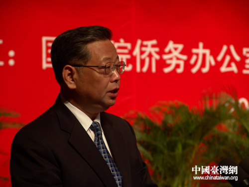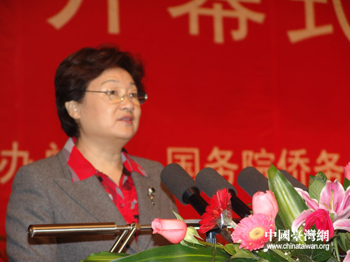國務(wù)院僑務(wù)辦公室主任李海峰在開幕式上致辭。她說,無論是中華民族移民臺灣的歷史,還是現(xiàn)存民間的萬種家譜,都記載著臺灣同胞和祖國大陸特別是海峽西岸之間廣泛而密切的血緣親情關(guān)系。今天,雖然兩岸尚未統(tǒng)一,但大陸和臺灣同屬一個中國的事實從未改變。這是任何人也無法否認(rèn)的歷史事實。令人痛心的是,在兩岸同胞一心求和平、求穩(wěn)定、求發(fā)展,希望共同建設(shè)美好家園的今天,竟有那么一些人,為一黨一己之私,刻意歪曲臺灣同胞愛國愛鄉(xiāng)的情懷和當(dāng)家作主的意愿,變本加厲地從事“去中國化”、“文化臺獨(dú)”、“法理臺獨(dú)”等分裂活動,企圖以此挑起兩岸沖突,欺騙民眾,騙取選票,實現(xiàn)“臺獨(dú)”分裂圖謀。這一嚴(yán)重危害兩岸關(guān)系和平發(fā)展的行徑,理所當(dāng)然引起了兩岸同胞和廣大海外僑胞的強(qiáng)烈反對。我們高興地看到,廣大海外僑胞、港澳同胞長期以來一直高度關(guān)注臺海局勢的發(fā)展和兩岸關(guān)系的前景,充分發(fā)揮獨(dú)特優(yōu)勢和影響,積極開展各種形式的“反獨(dú)促統(tǒng)”活動,表達(dá)他們期盼中國早日實現(xiàn)完全統(tǒng)一的真誠愿望和強(qiáng)烈訴求。