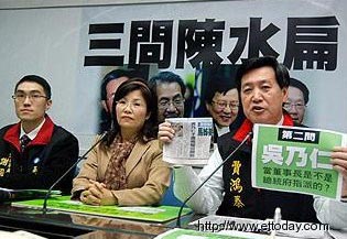 國民黨“立法院”黨18日再度針對臺當(dāng)局籌設(shè)鐽震公司發(fā)表看法并三問陳水扁,同時呼吁“國防部長”李天羽勿成“A錢的幫兇”。臺灣東森新聞記者朱家彥攝