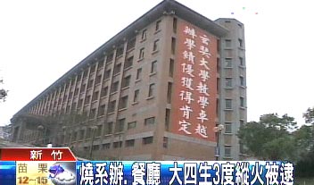 縱火的23歲學生,聲稱因為對王姓系主任不幫他寫報考研究所推薦函,耿耿于懷,一氣之下竟然深夜?jié)撊胂缔k公室,點燃報紙引火燒毀布告欄,再到餐飲部以同樣方式縱火,隔天嫌犯氣還未消,又跑到系辦縱火,驚動火警警報器當場被逮。曾國修表示:“這位同學在學校成績大約中等,是不是有向系主任請求寫推薦函,學校方面不是很清楚!
