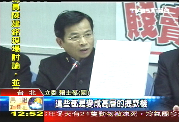 國民黨“立委”賴士葆痛批臺當(dāng)局“經(jīng)濟(jì)部”賤賣華揚(yáng)史威靈公司(圖片來源:TVBS)
