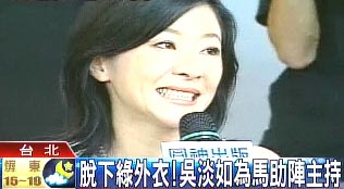 報(bào)道稱,不過吳淡如現(xiàn)在決定脫下綠色外衣,在馬蕭3月8日重頭大戲,高雄婦女節(jié)晚會中現(xiàn)身擔(dān)綱主持。國民黨文傳會主任賴素如說:“至少她愿意為我們的活動來主持,這都是以前支持過民進(jìn)黨,曾經(jīng)支持過陳水扁的人!保ǜ叽罅郑