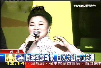 剛剛主持完國民黨“228音樂會”,藝人白冰冰昨天又自掏腰包錄制新歌,為國民黨2008候選人馬英九加油打氣。這首名為“向前行一定贏”的新歌,由白冰冰本人以及張魁、劉福助等多名島內本土藝人共同演唱。