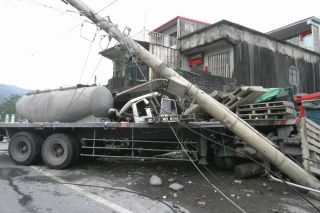 中午12點半,北部濱海公路宜蘭縣頭城梗枋路段也傳出車禍。一輛載有混凝土的水泥車和板車疑似因為超車不當(dāng),在北上車道彎道處失控撞進(jìn)路旁民宅,造成3人受傷。事故發(fā)生后,宜蘭縣消防局緊急動員救難人員和3部救護(hù)車及破壞器材前往搶救。40分鐘內(nèi)將受困民眾一一救出,3名傷者被送醫(yī)時都還有意識。在這起事故中,肇事車輛同時撞斷路旁電線桿,一度造成頭城梗枋地區(qū)3300百多戶用戶停電和當(dāng)?shù)亟煌ㄊ茏琛?/P>