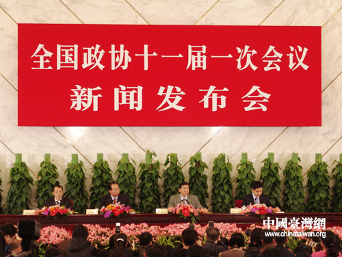 全國政協(xié)十一屆一次會議今天下午在人民大會堂舉行新聞發(fā)布會。(攝影:趙穎芳)