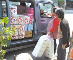 衛(wèi)生紙飆漲,臺(tái)灣南部小販以箱型車(chē)兜售雜牌衛(wèi)生紙,一串5包只要新臺(tái)幣50元,價(jià)格是知名品牌的一半,成為搶手貨。臺(tái)灣《中國(guó)時(shí)報(bào)》潘杏惠攝