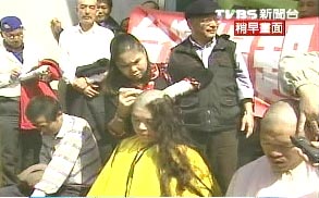 中國臺灣網(wǎng)3月12日消息 據(jù)臺灣“中央社”報(bào)道,臺灣“拒領(lǐng)公投票聯(lián)盟”今天舉行“剃光頭、反公投”活動(dòng),“拒領(lǐng)公投票聯(lián)盟”總召集人黃光國表示,反對民進(jìn)黨及國民黨以“入聯(lián)公投”及“返聯(lián)公投”操縱民意,以剃光頭代表拒領(lǐng)“公投”票的決心。