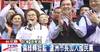 中國臺灣網(wǎng)3月15日消息 據(jù)臺灣“中央社”報道,從政22年以來且有些偏綠的無黨籍蘆洲市長李翁月娥,今天決定投藍(lán),下午在國民黨2008候選人馬英九陪同下宣布加入國民黨。