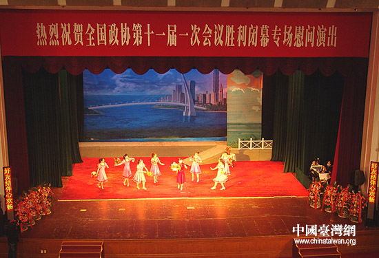中國(guó)臺(tái)灣網(wǎng)3月16日北京消息 以反映海峽兩岸京劇梨園世家文化藝術(shù)交流、情感交織為主線(xiàn)的大型現(xiàn)代京劇《海上生明月》昨晚在全國(guó)政協(xié)禮堂演出。全國(guó)政協(xié)副主席孫家正、國(guó)臺(tái)辦副主任孫亞夫、海協(xié)會(huì)副會(huì)長(zhǎng)張銘清等觀看了演出。