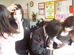 臺灣云林縣正心中學(xué)214名學(xué)生出現(xiàn)集體惡心及上吐及下瀉,學(xué)校健康中心校護(hù)忙著為學(xué)生檢查。(臺灣《中國時(shí)報(bào)》圖片)